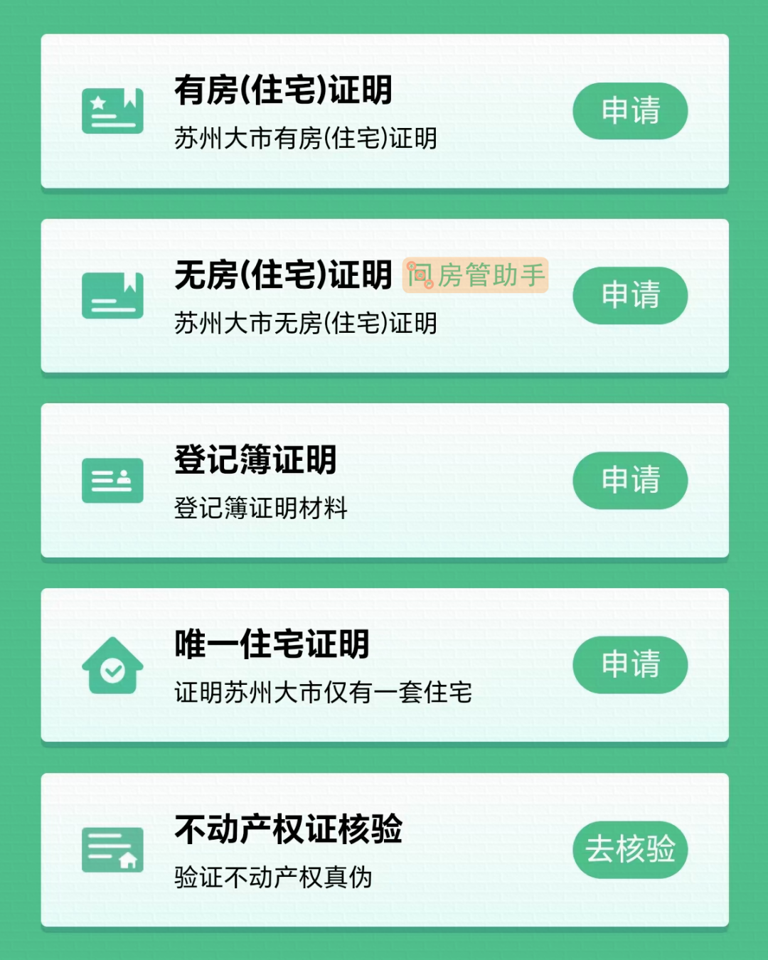 (苏州市不动产查询系统不仅可以在线开具有房证明、无房证明、登记簿证明和唯一住宅证明,还可以进行不动产权证核验,验证房产证真伪)
